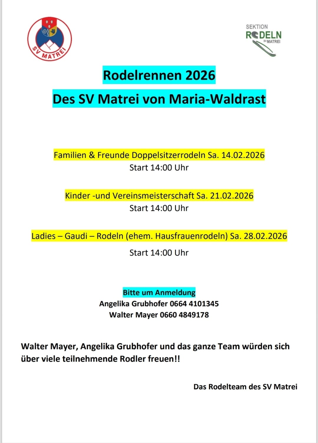 Rodelrennen 2026