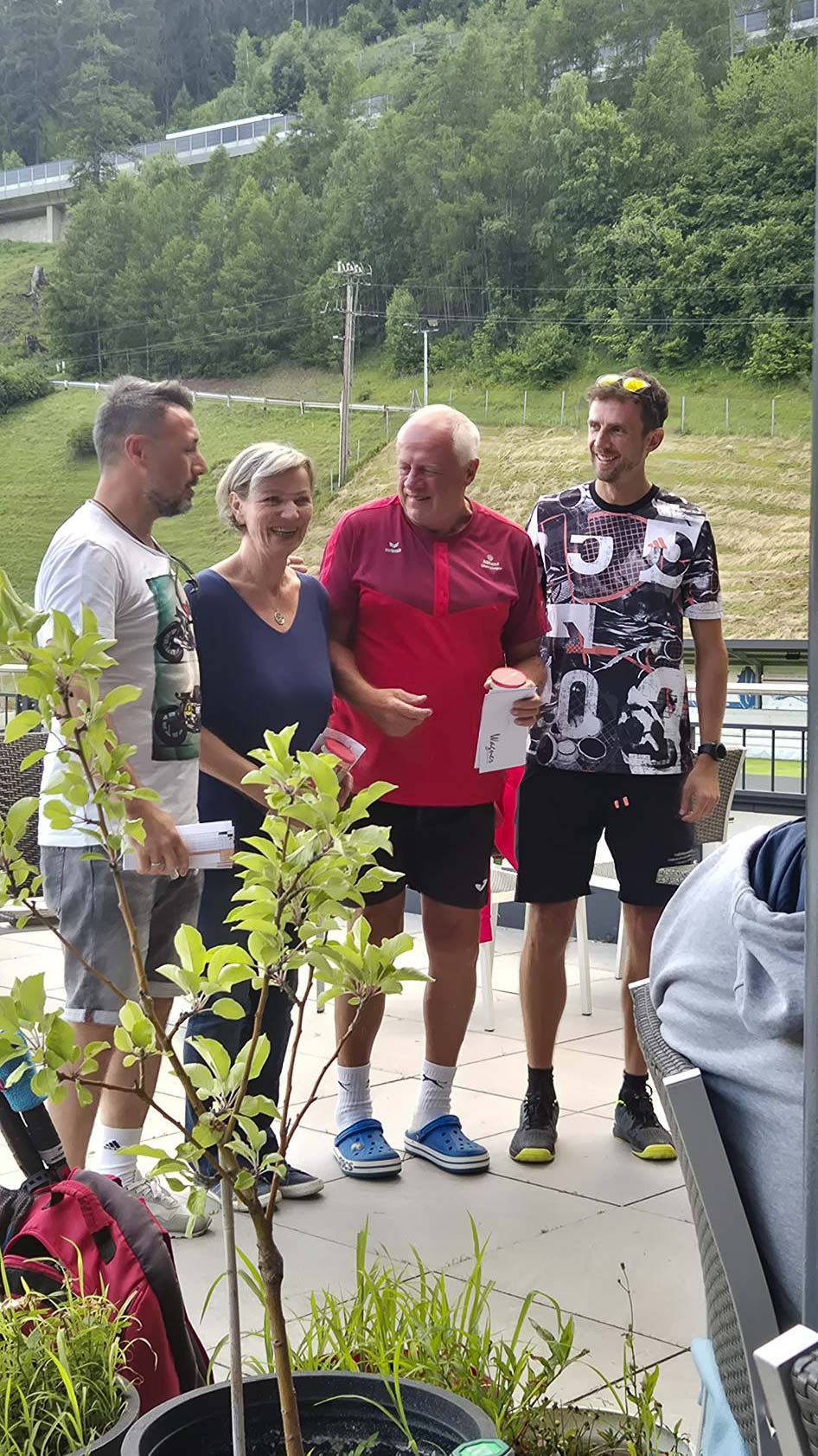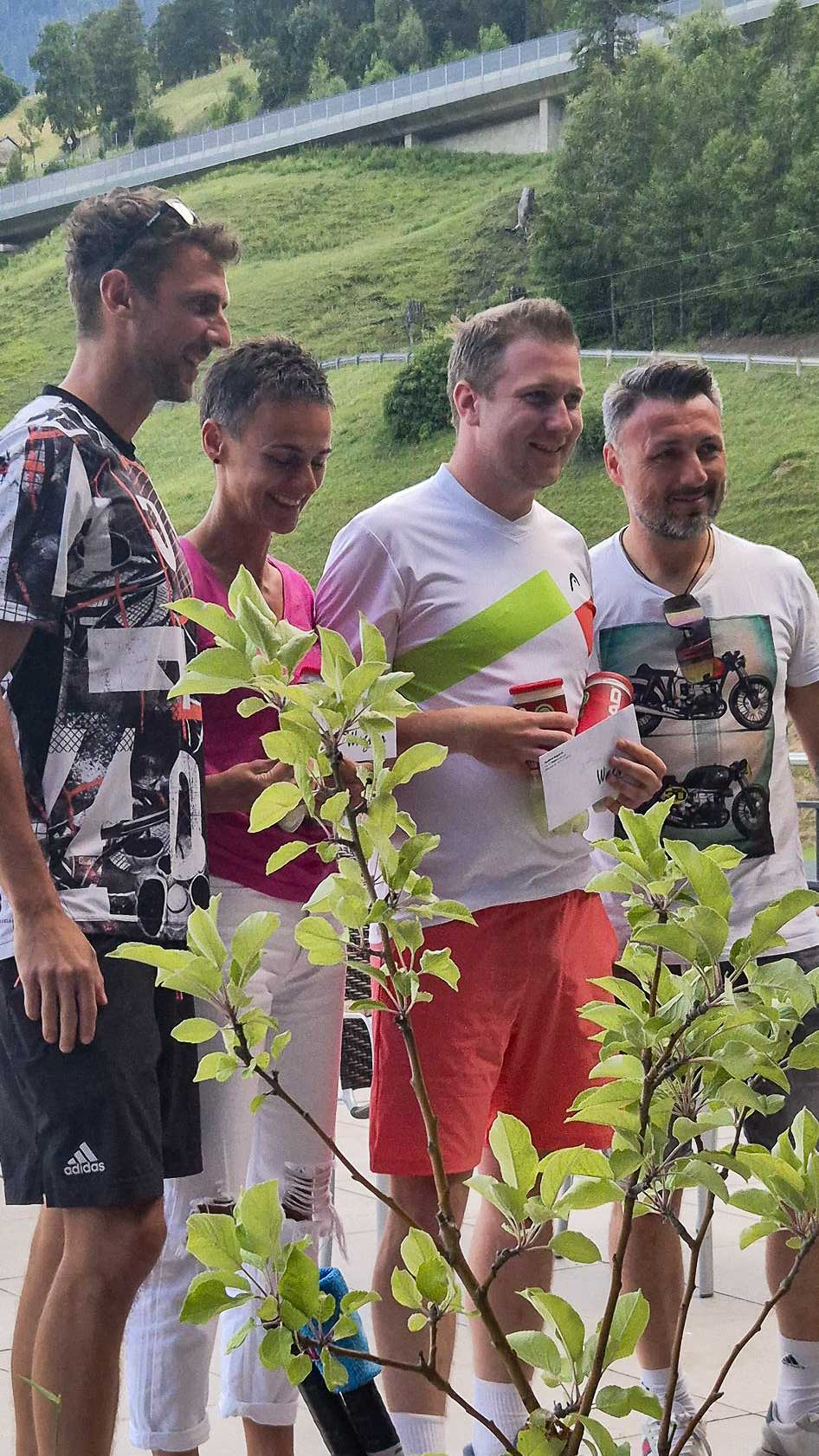 Ergebnisse: 1. Platz Geli & Dani, 2. Platz Paula & Markus, 3. Platz Claudia & Stefan, letzter Platz (Gewinner vom Wurstkranz) Trude & Moritz